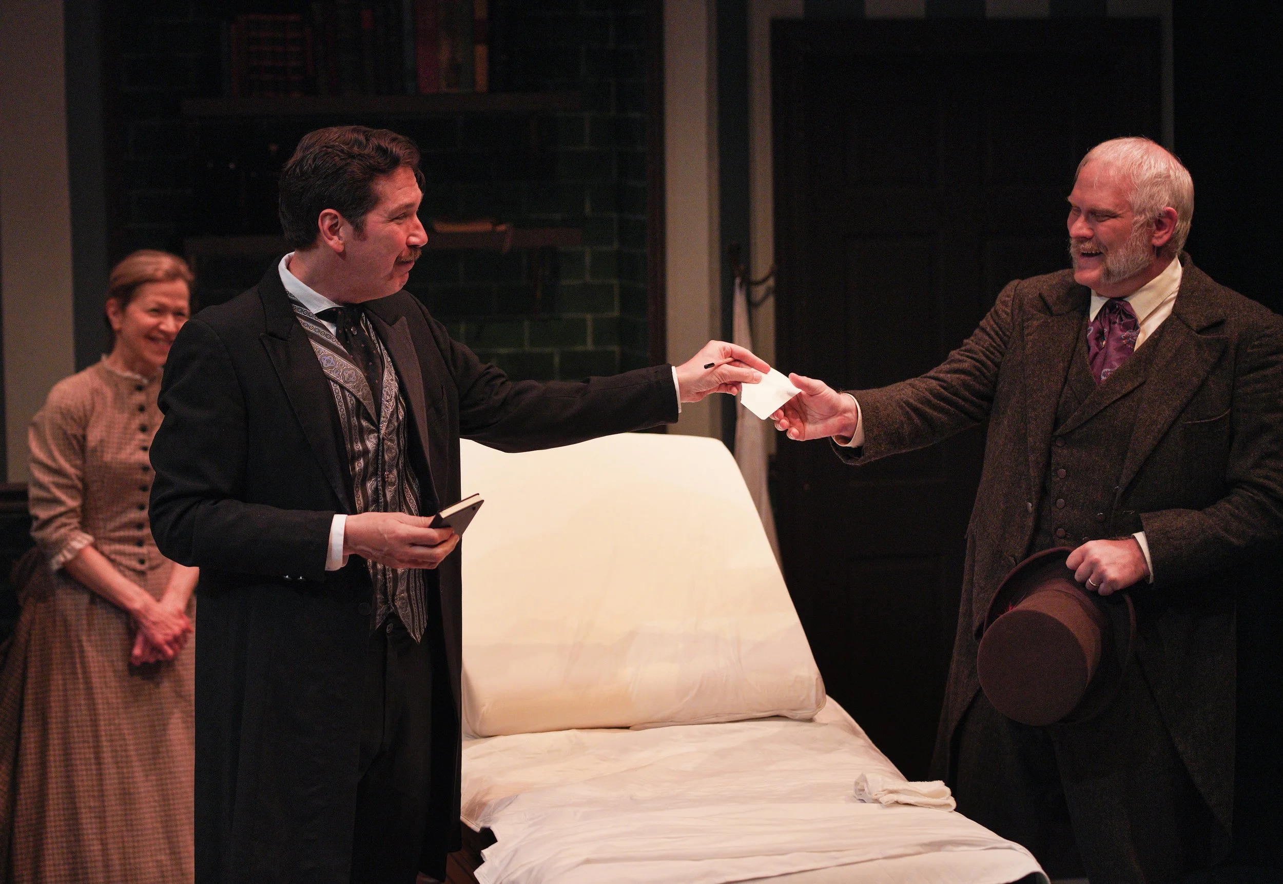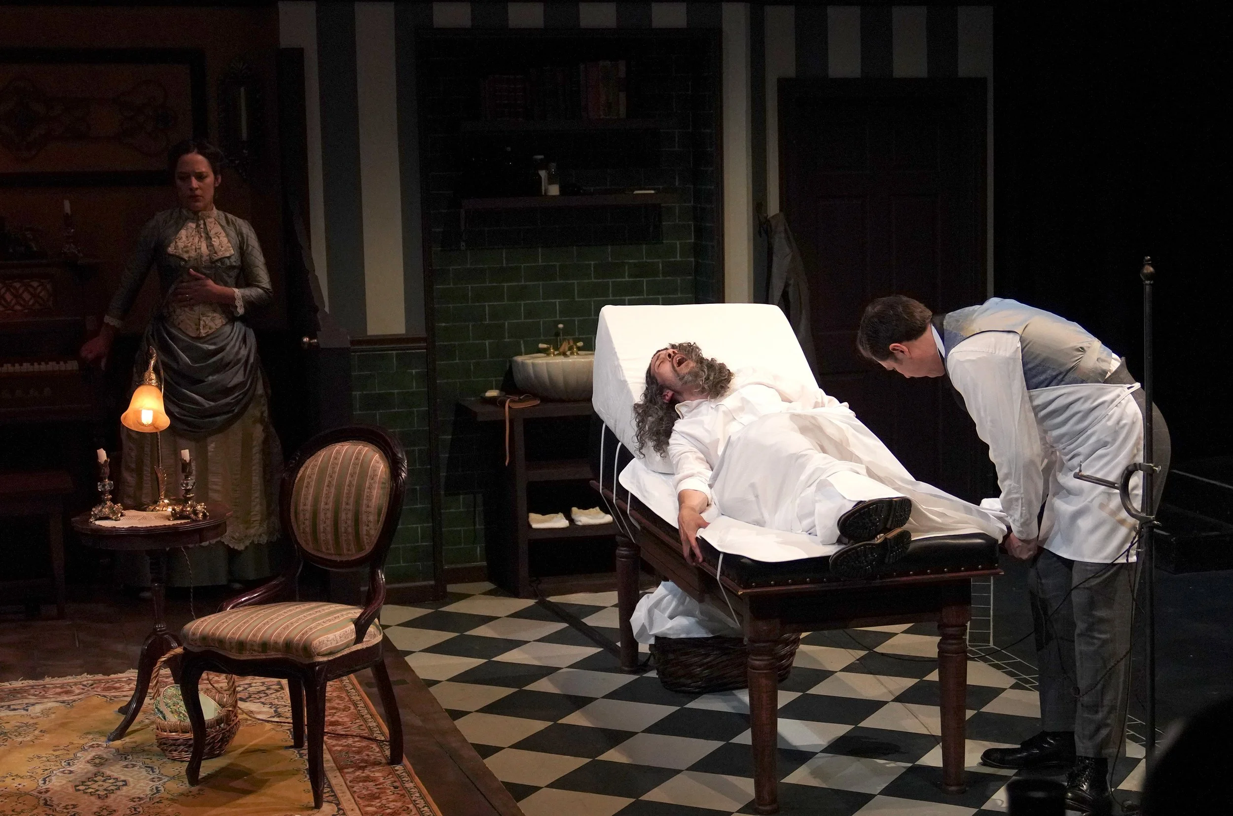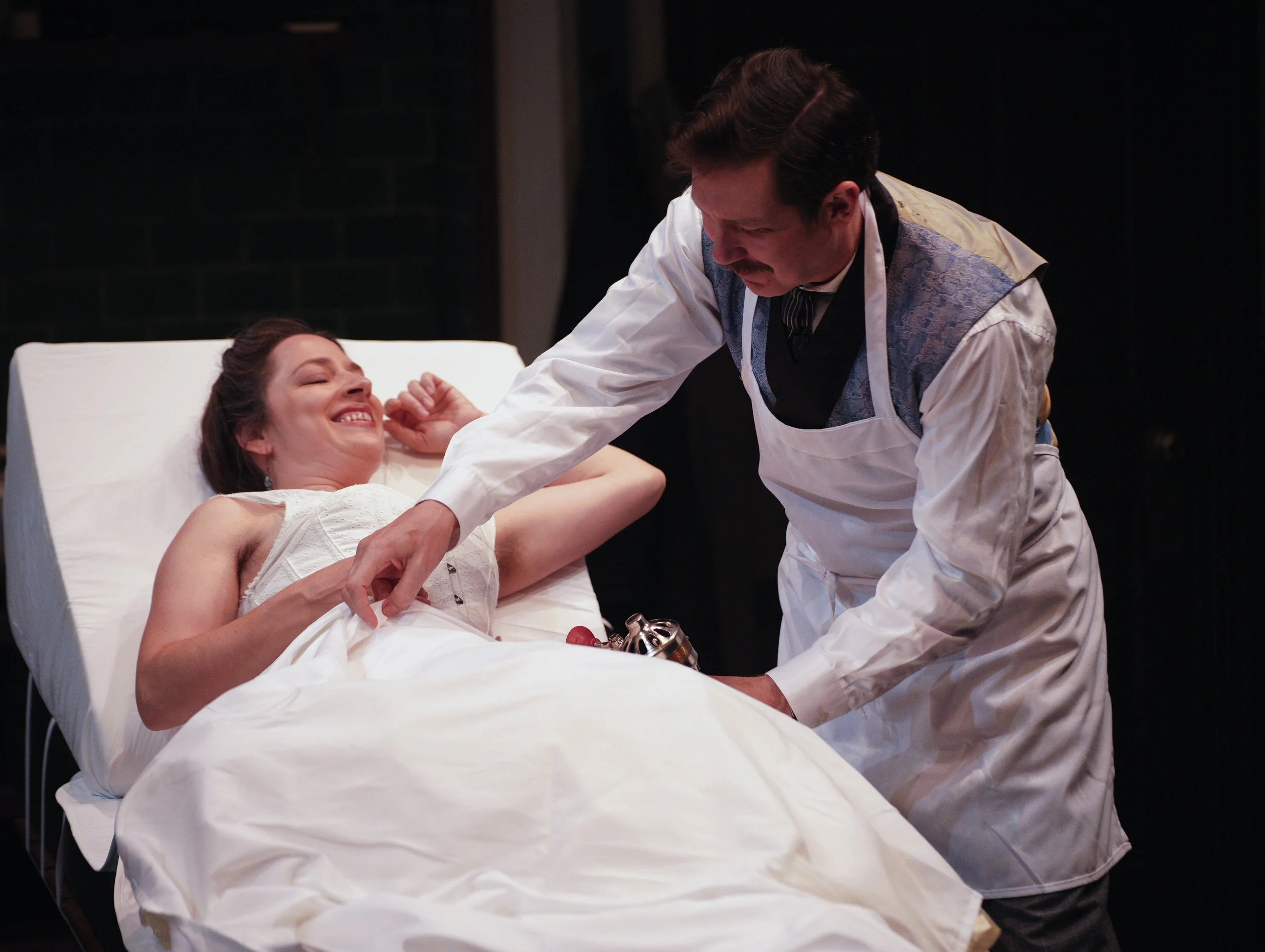 In The Next Room is a laugh-out-loud, dramatic comedy with a fresh take on the history and politics of relationships, science and electricity. Dr. Givings has innocently invented an extraordinary new device for treating “hysteria” in women. While tending to her newborn, the young, energetic Mrs. Givings is overwhelmed by curiosity, fantasizing about what could be happening within the walls of the good doctor’s laboratory in the next room. Inside of the pristine, seemingly perfect Victorian home, Dr. and Mrs. Givings examine the nature of their marriage, and what it means to honestly love.