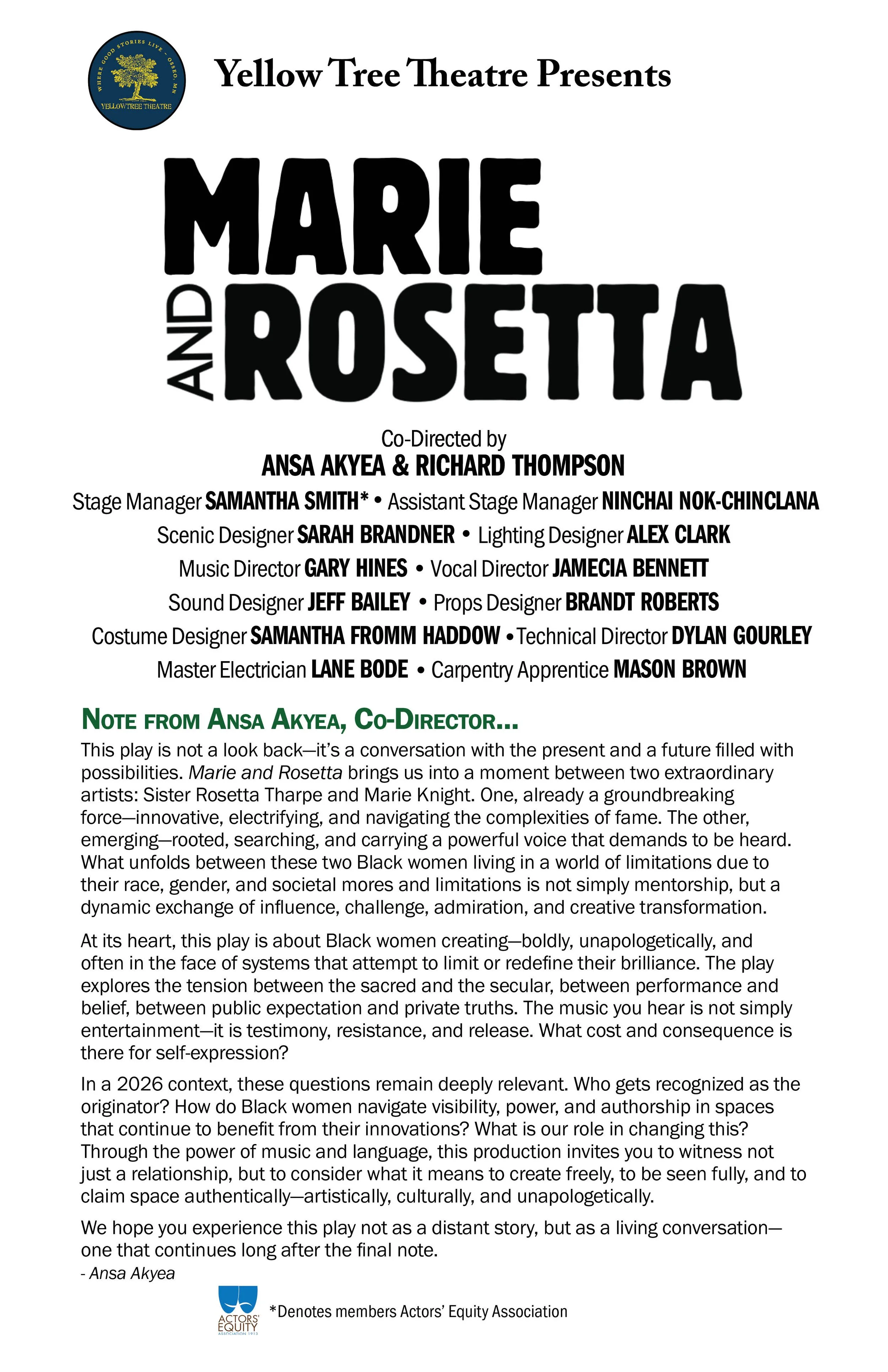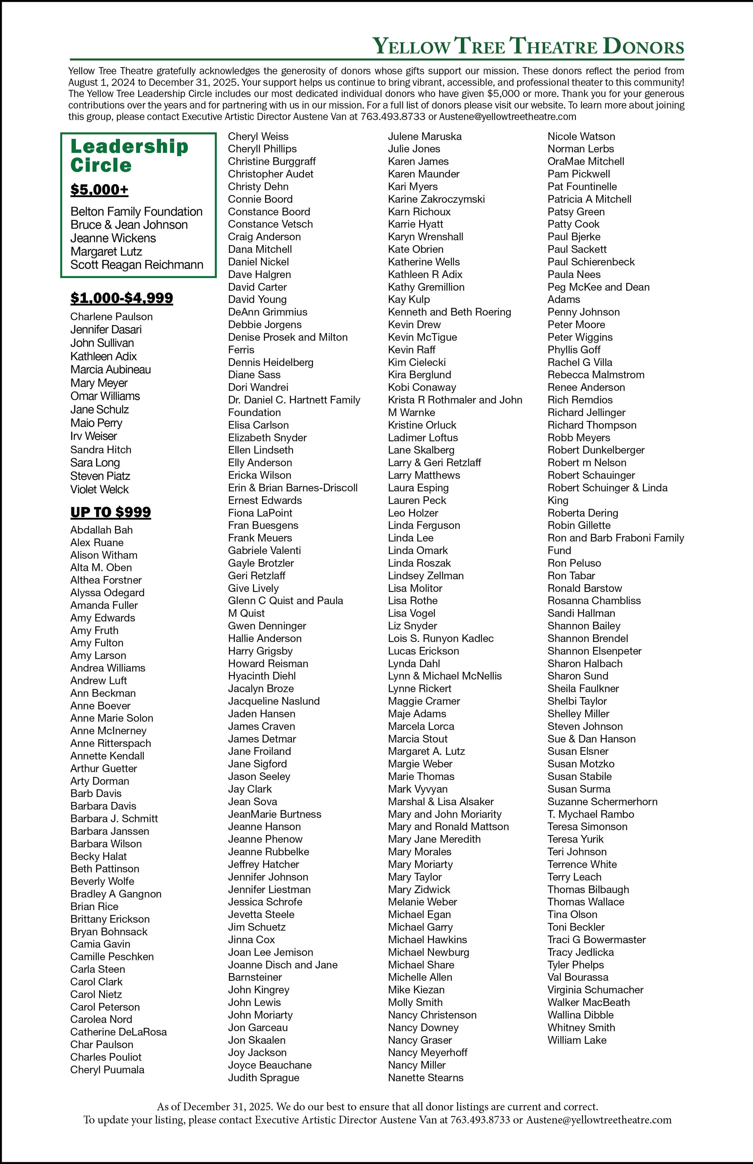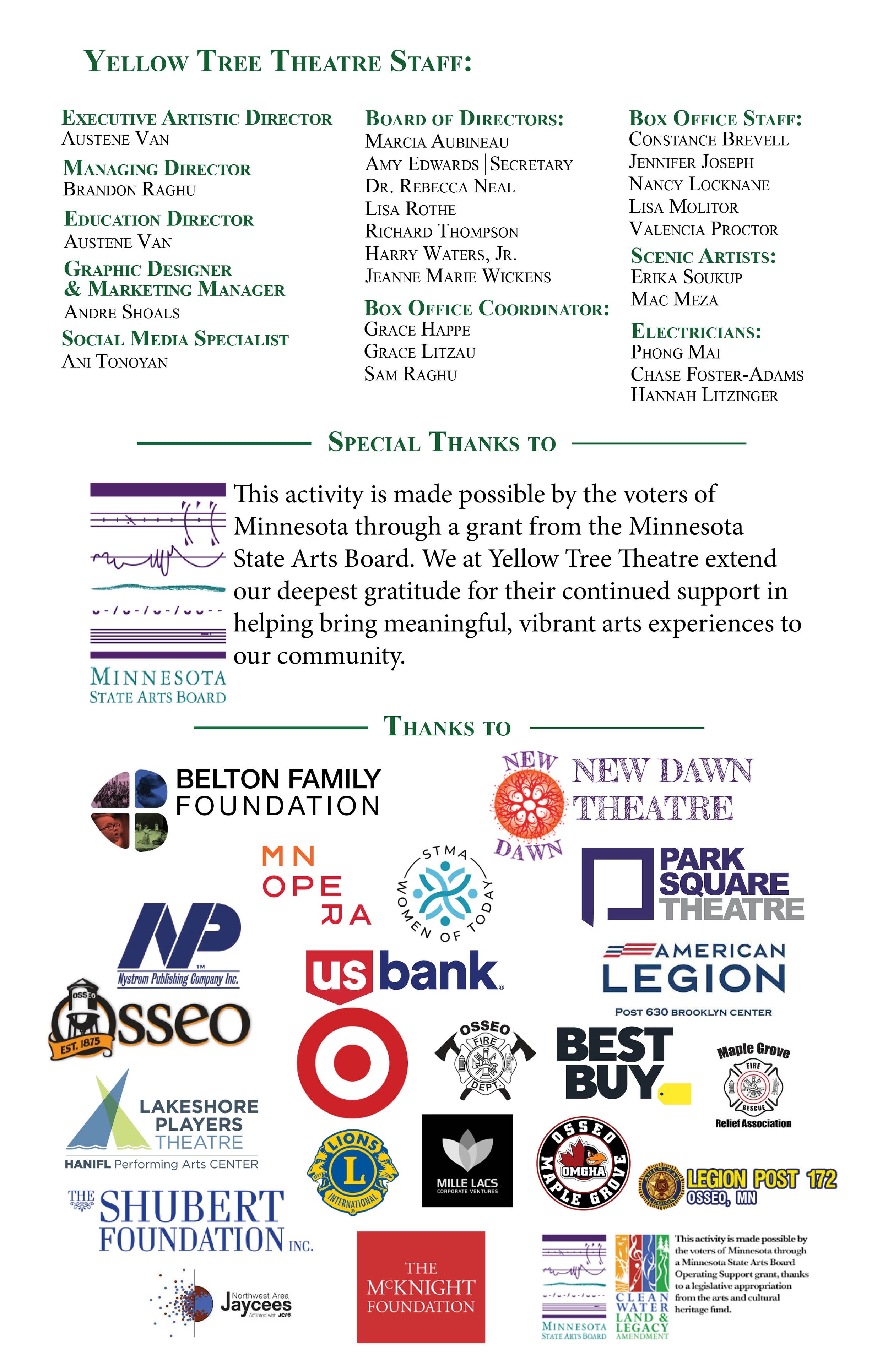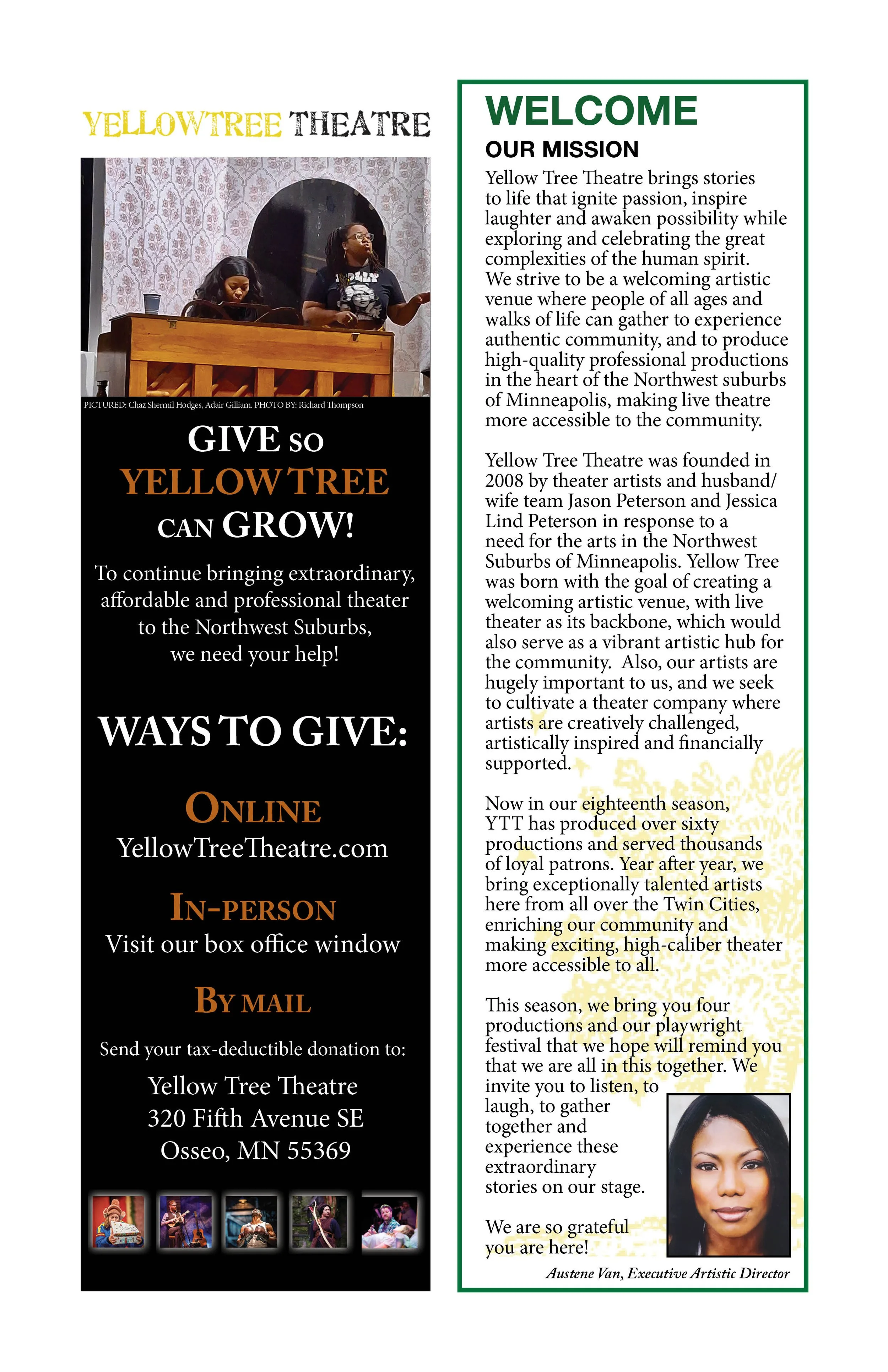 Yellow Tree Theatre is powered by people like you who believe in bold stories and vibrant community. Your gift helps us keep creating the kind of theatre that brings folks together, sparks joy and lifts up local artists. Every dollar truly makes a difference. If you’re able, please donate and help keep the magic shining bright. 💛